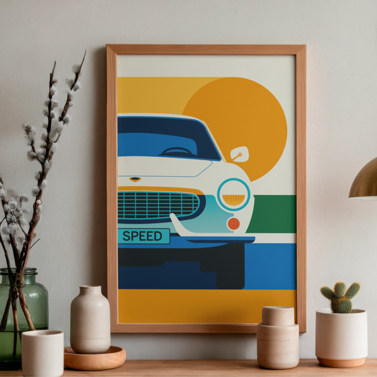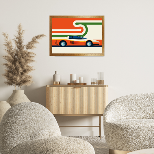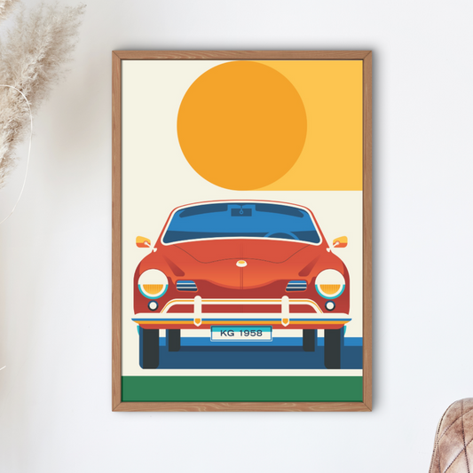 Red and Crème Sports Car Front with Sun by Bo Lundburg