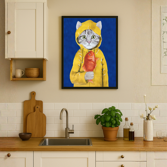 Cat With Fish by Coco Deparis