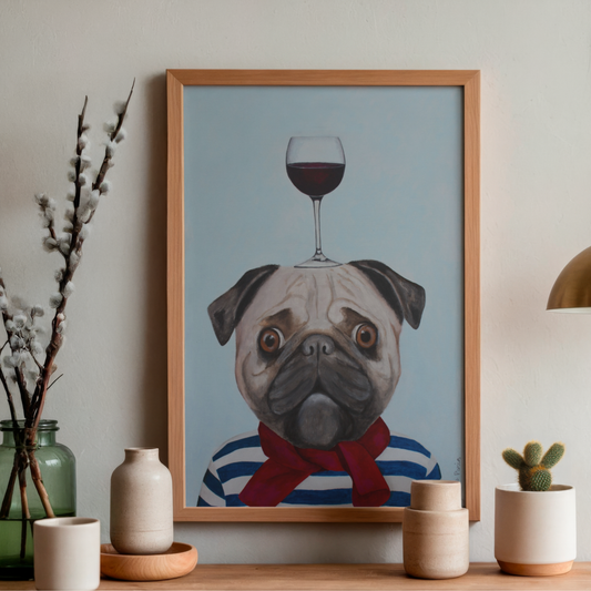 Pug with Wineglass by Coco Deparis