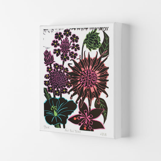 Kate’s work is instantly recognisable for its botanical themes, vibrant colour and layered textures. It’s floral art with a modern edge.