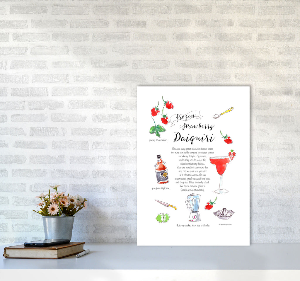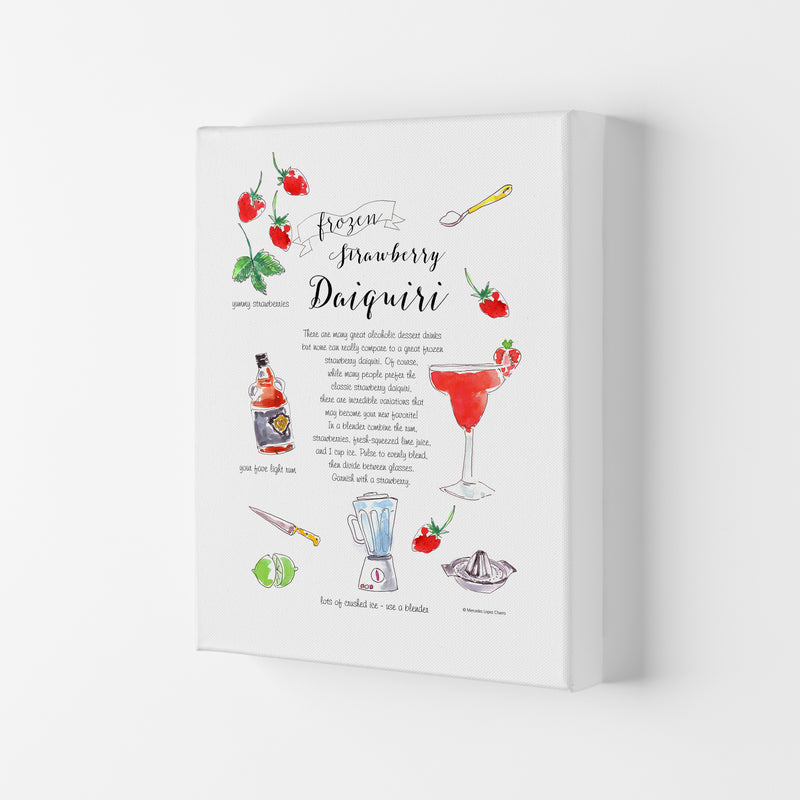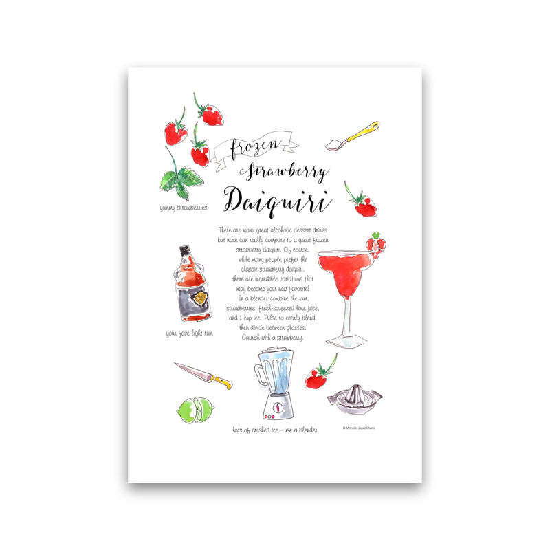 Strawberry Daiquiri Cocktail Recipe, Kitchen Food original Giclée fine art print. Available both as a framed print, print only or vibrant canvas art. Art print from an original by Mercedes Lopez Charro ©