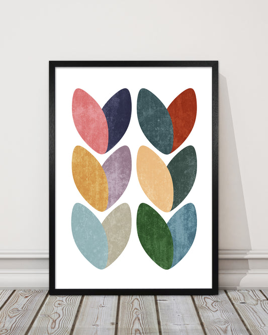 Mid-century wall art works well on its own or as part of a gallery wall. The clean lines and balanced colour palettes make it easy to pair with other styles, especially pieces from our abstract art prints, quotation prints, or contemporary art collections.