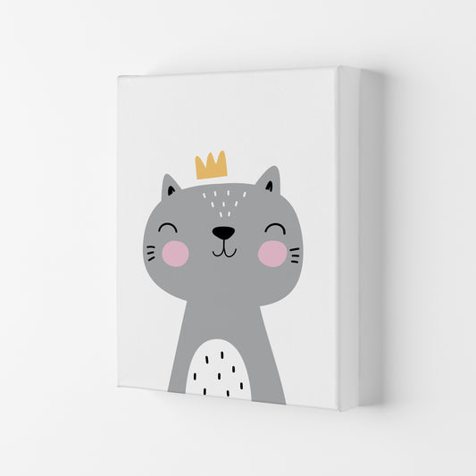 Grey Scandi Cat With Crown Modern Print Animal Art Print