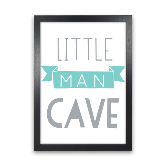 Little Man Cave Black Banner Framed Nursey Wall Art Print