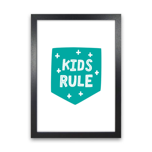 Kids Rule Teal Super Scandi Art Print by Pixy Paper
