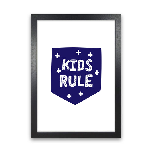 Kids Rule Navy Super Scandi Art Print by Pixy Paper