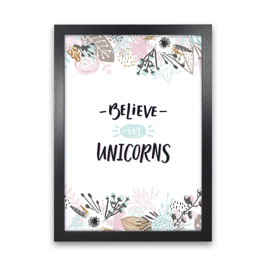 Believe In Unicorns Floral Art Print by Pixy Paper