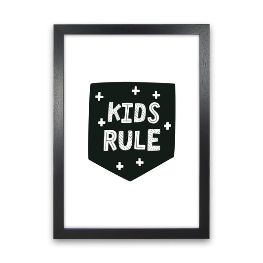 Kids Rule Black Super Scandi Art Print by Pixy Paper