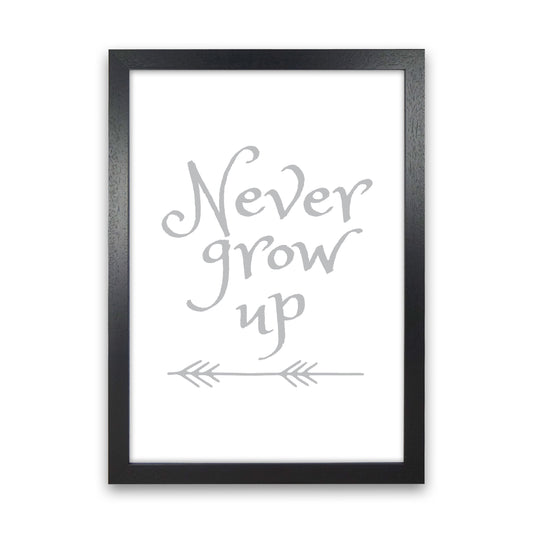 Never Grow Up Grey Framed Typography Wall Art Print