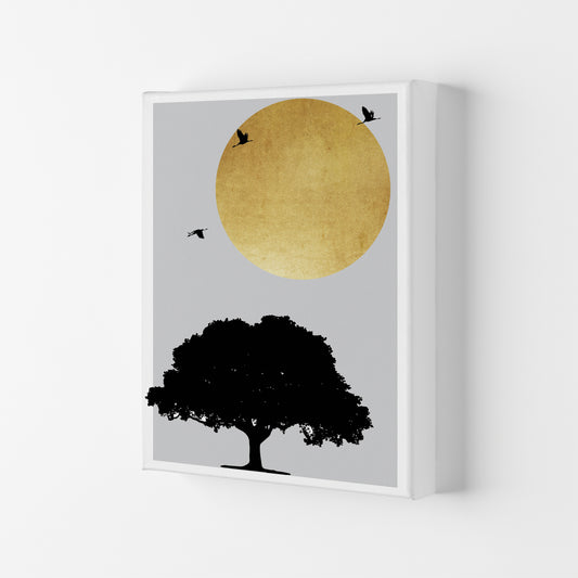 Gold Sun And Tree Abstract Art Print by Pixy Paper