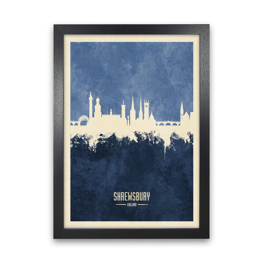 Shrewsbury England Skyline Portrait Navy Art Print by Michael Tompsett