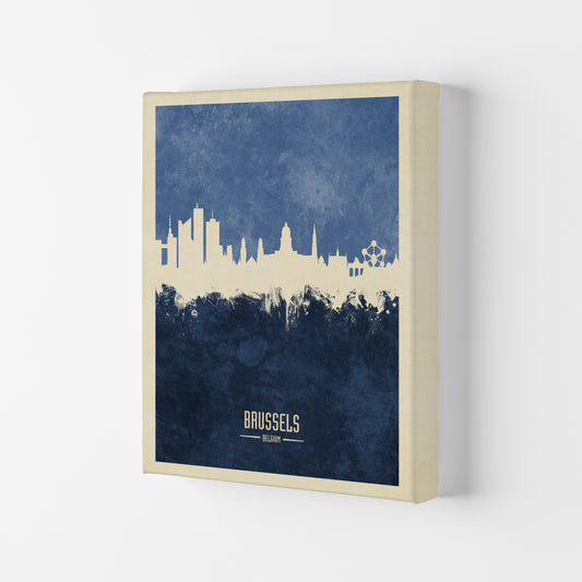 Brussels Belgium Skyline Portrait Navy Art Print by Michael Tompsett