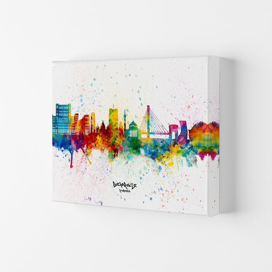 Bucharest Romania Skyline Splash Art Print by Michael Tompsett