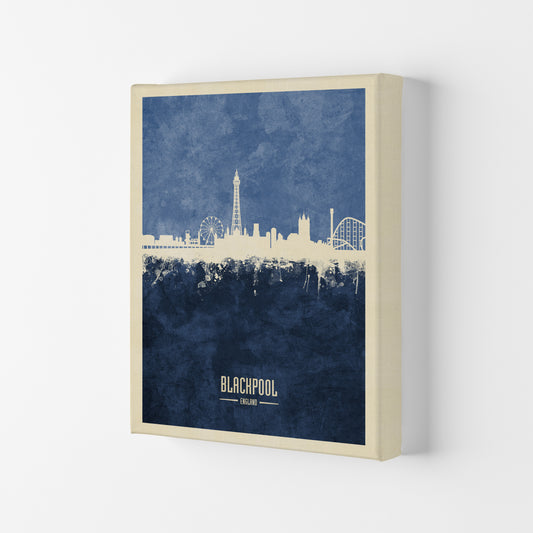 Blackpool England Skyline Portrait Navy Art Print by Michael Tompsett