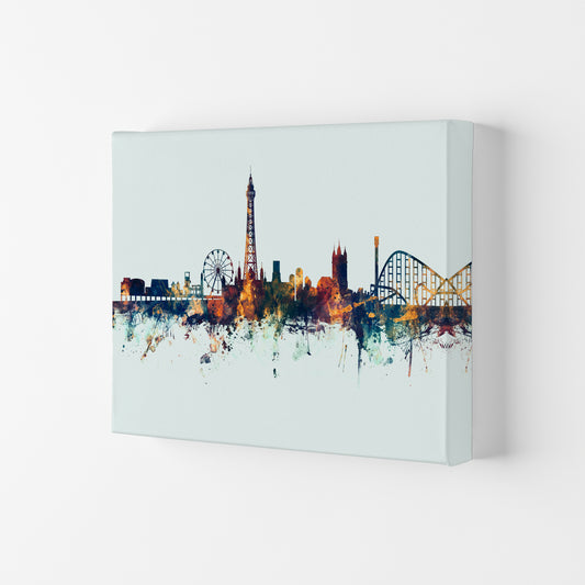 Blackpool England Skyline Blue Orange Art Print by Michael Tompsett