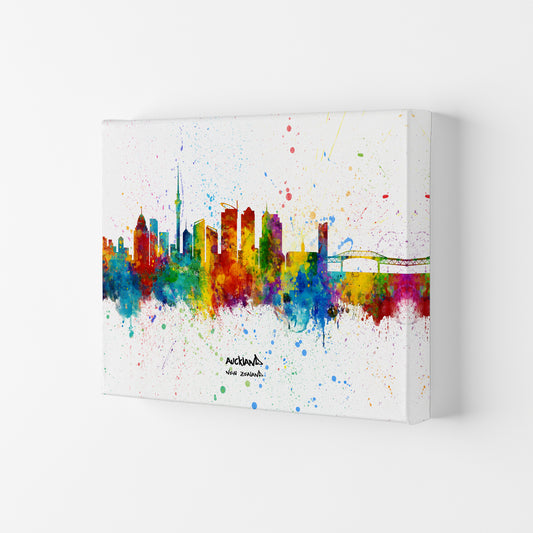 Auckland New Zealand Skyline Splash Art Print by Michael Tompsett