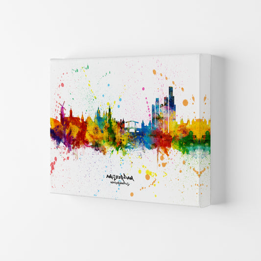 Amsterdam Netherlands Skyline Splash Art Print by Michael Tompsett