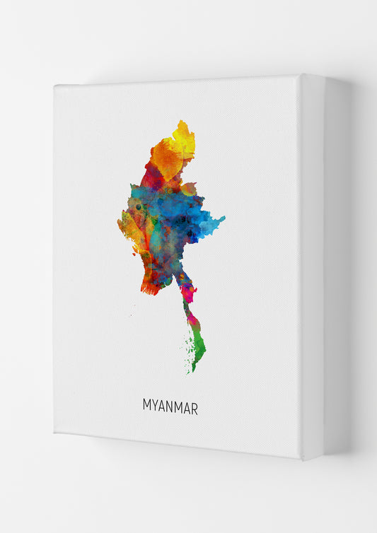 Myanmar Watercolour Map Art Print by Michael Tompsett