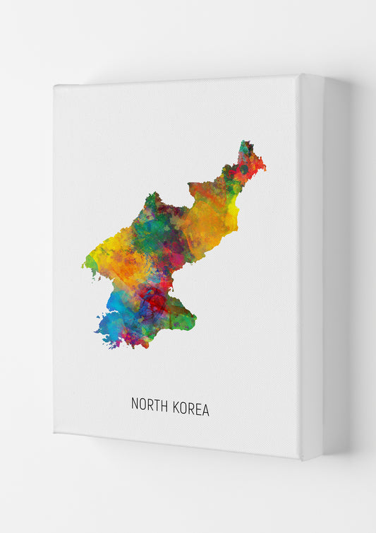 North Korea Watercolour Map Art Print by Michael Tompsett