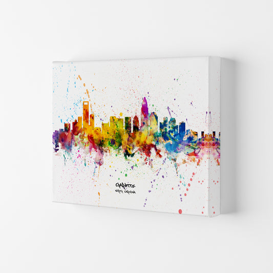 Charlotte North Carolina Skyline Splash Art Print by Michael Tompsett