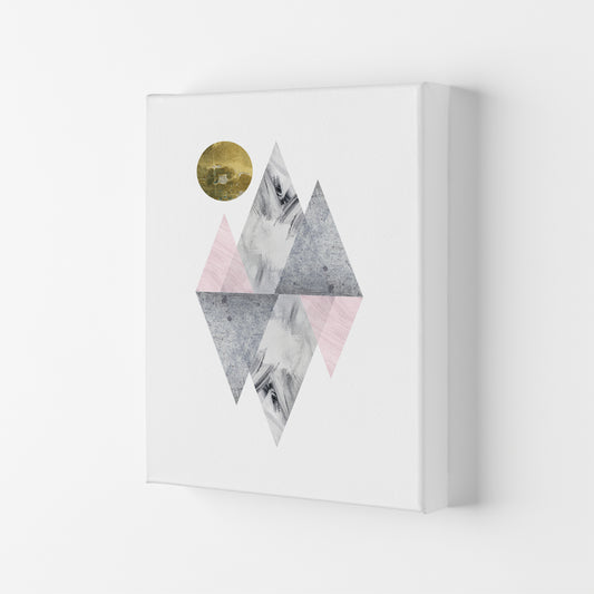 Luna Side Moon Pink And Grey Triangles Abstract Art Print by Pixy Paper