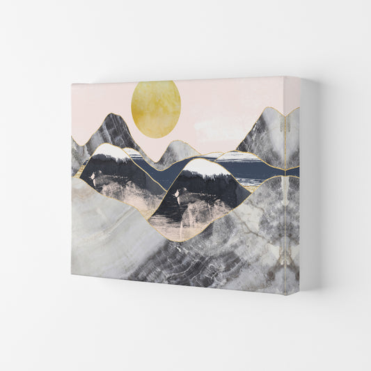 Gold Moon Navy Marble Mountains Landscape Art Print by Pixy Paper