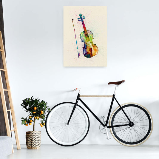 Violin Watercolour Multi-Colour Print by Michael Tompsett