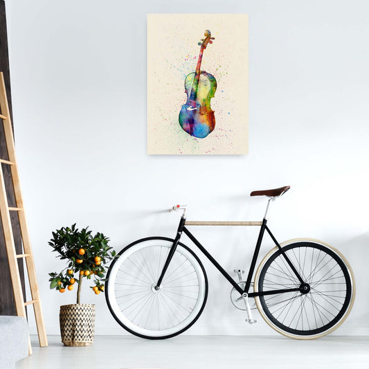 Cello Watercolour Multi-Colour Art Print by Michael Tompsett