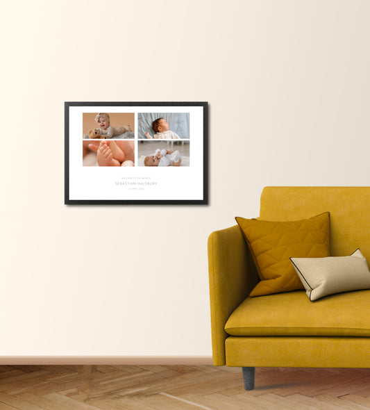 Regular price From £10.00 GBPRegular priceUnit price / perSale price From £10.00 GBPPersonalised Four Photo Up-load Baby Print Landscape