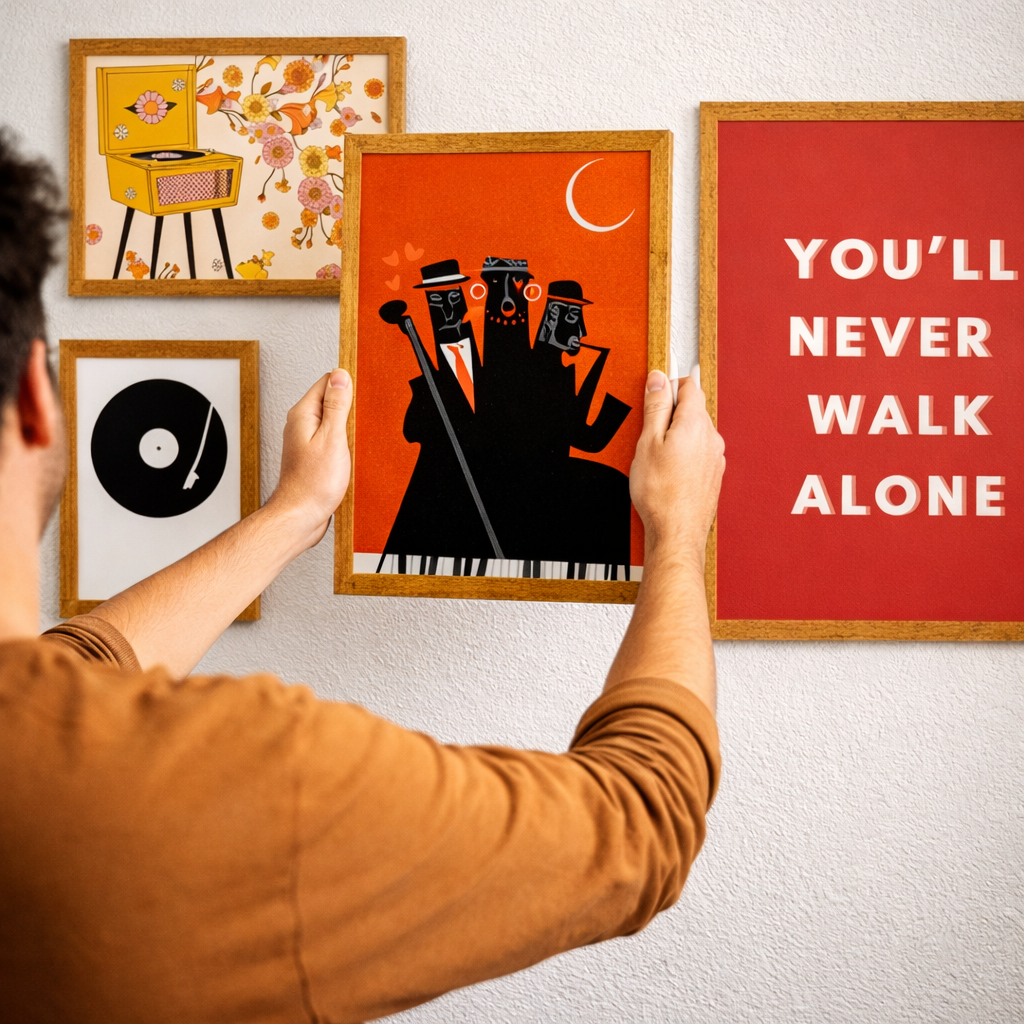 Yes, you can upload your own images and mix them with Athena’s prints to design a personalised gallery wall that reflects your style.