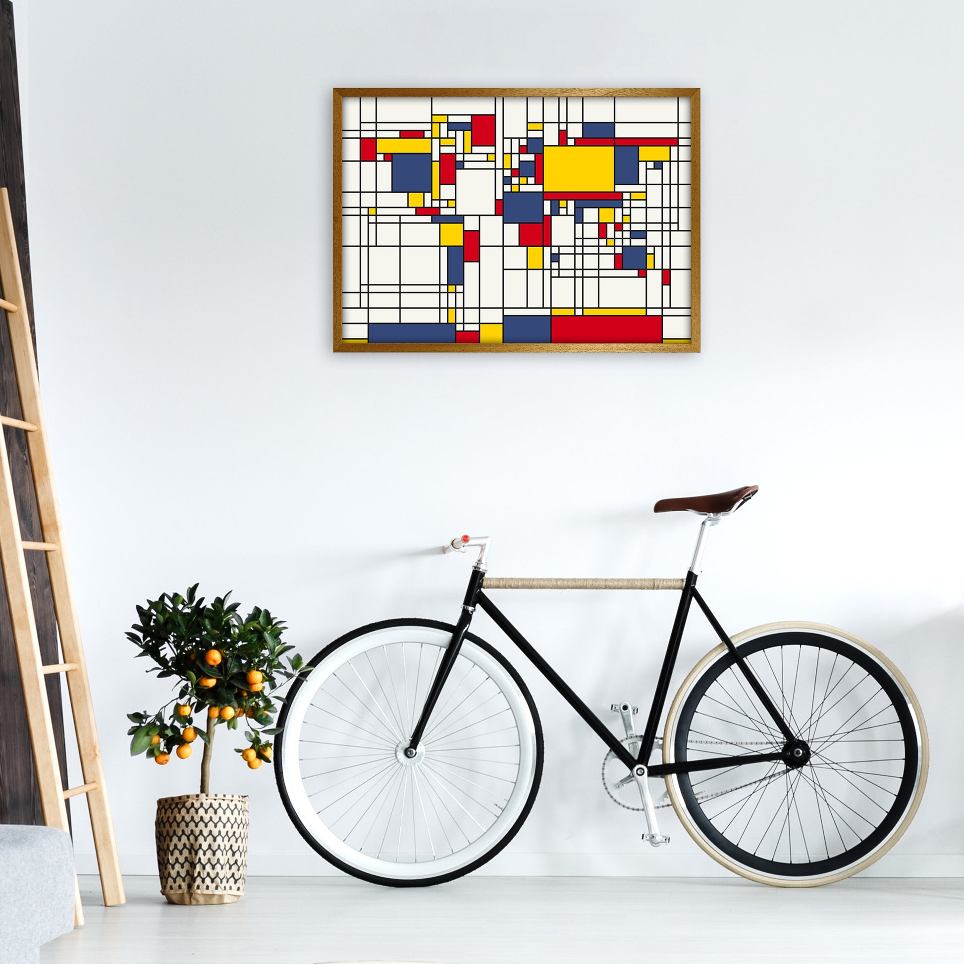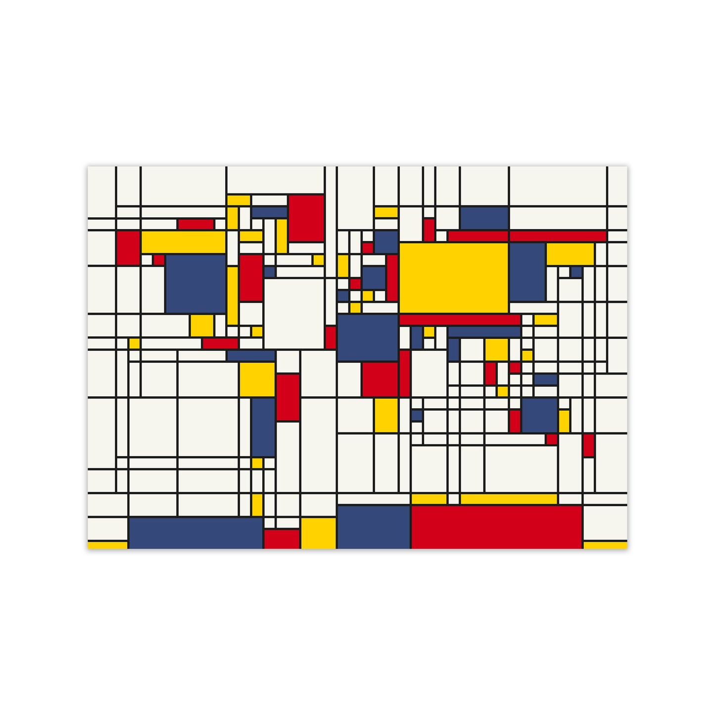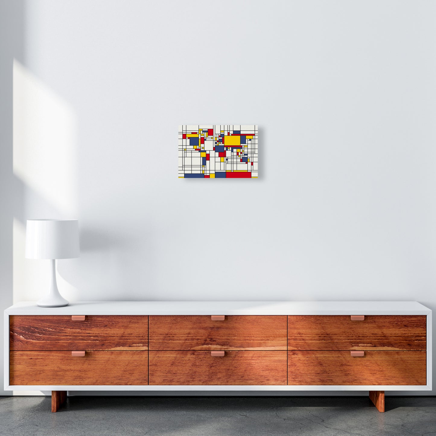 Abstract World Map in the style of Piet Mondrian original Giclée fine art print. Available both as a framed print, print only or vibrant canvas art. Art print from an original by Michael Tompsett ©