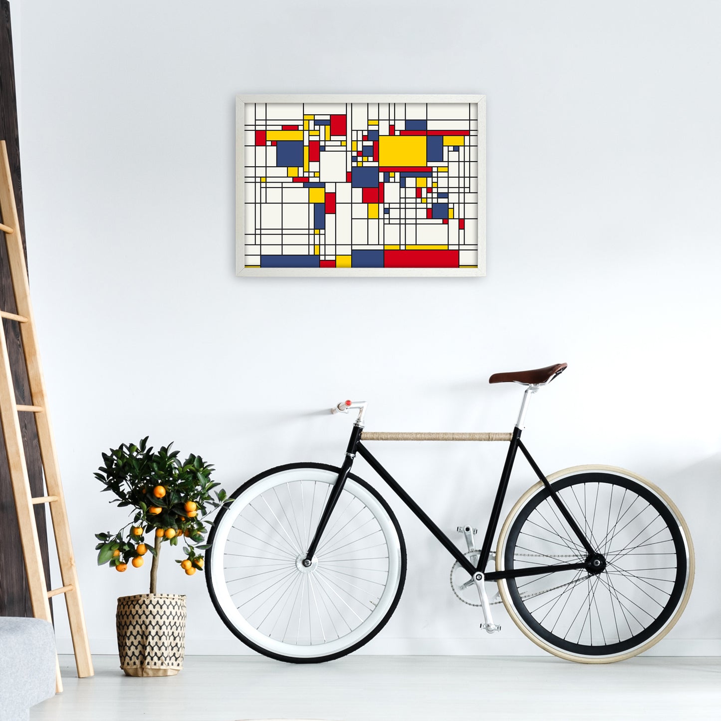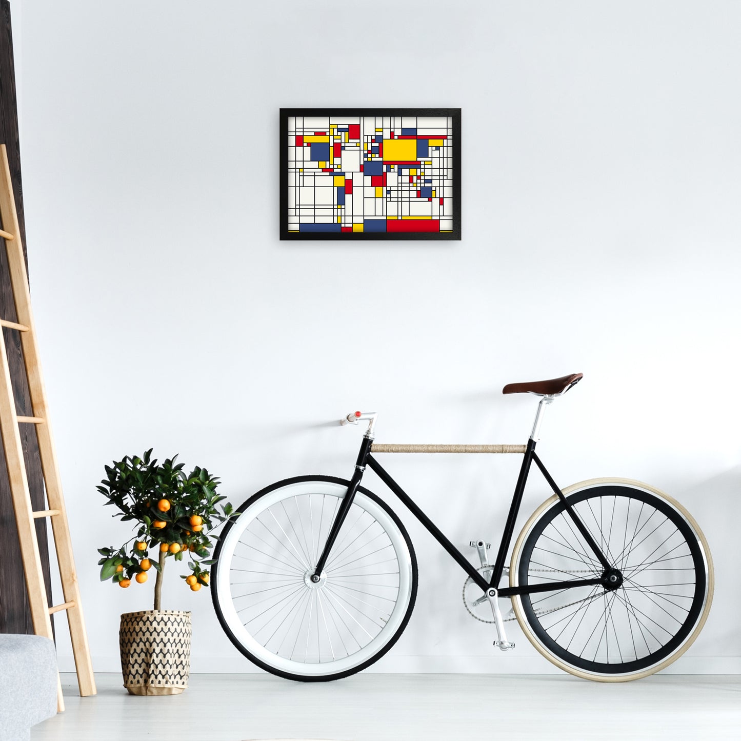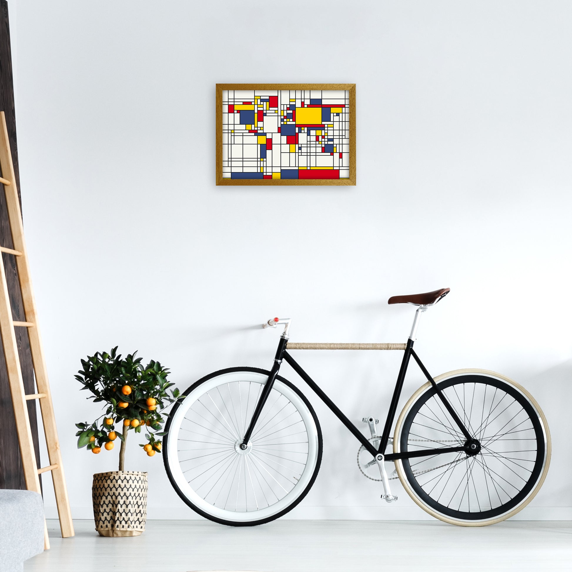 Abstract World Map in the style of Piet Mondrian original Giclée fine art print. Available both as a framed print, print only or vibrant canvas art. Art print from an original by Michael Tompsett ©