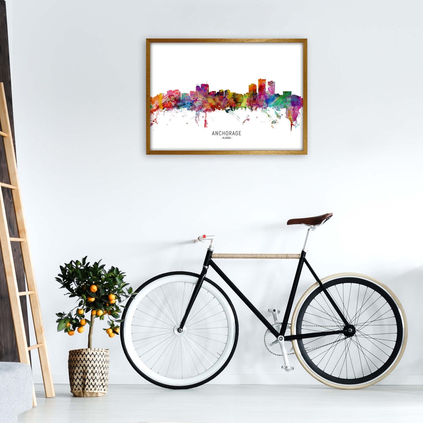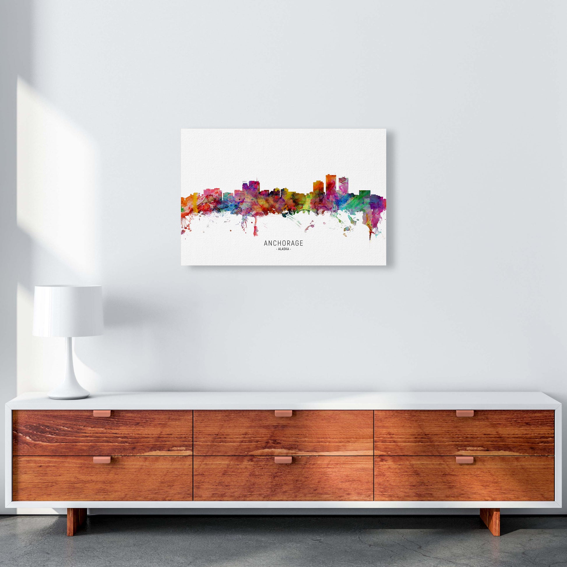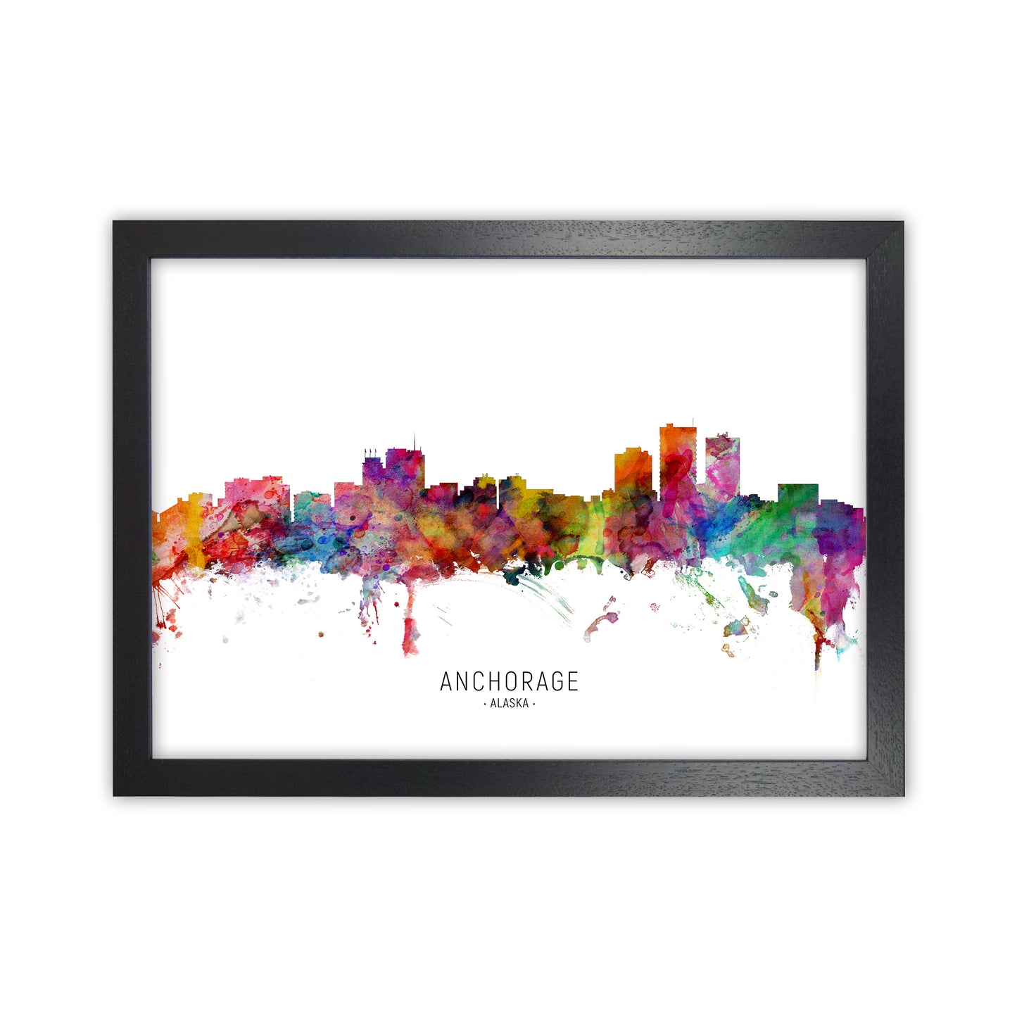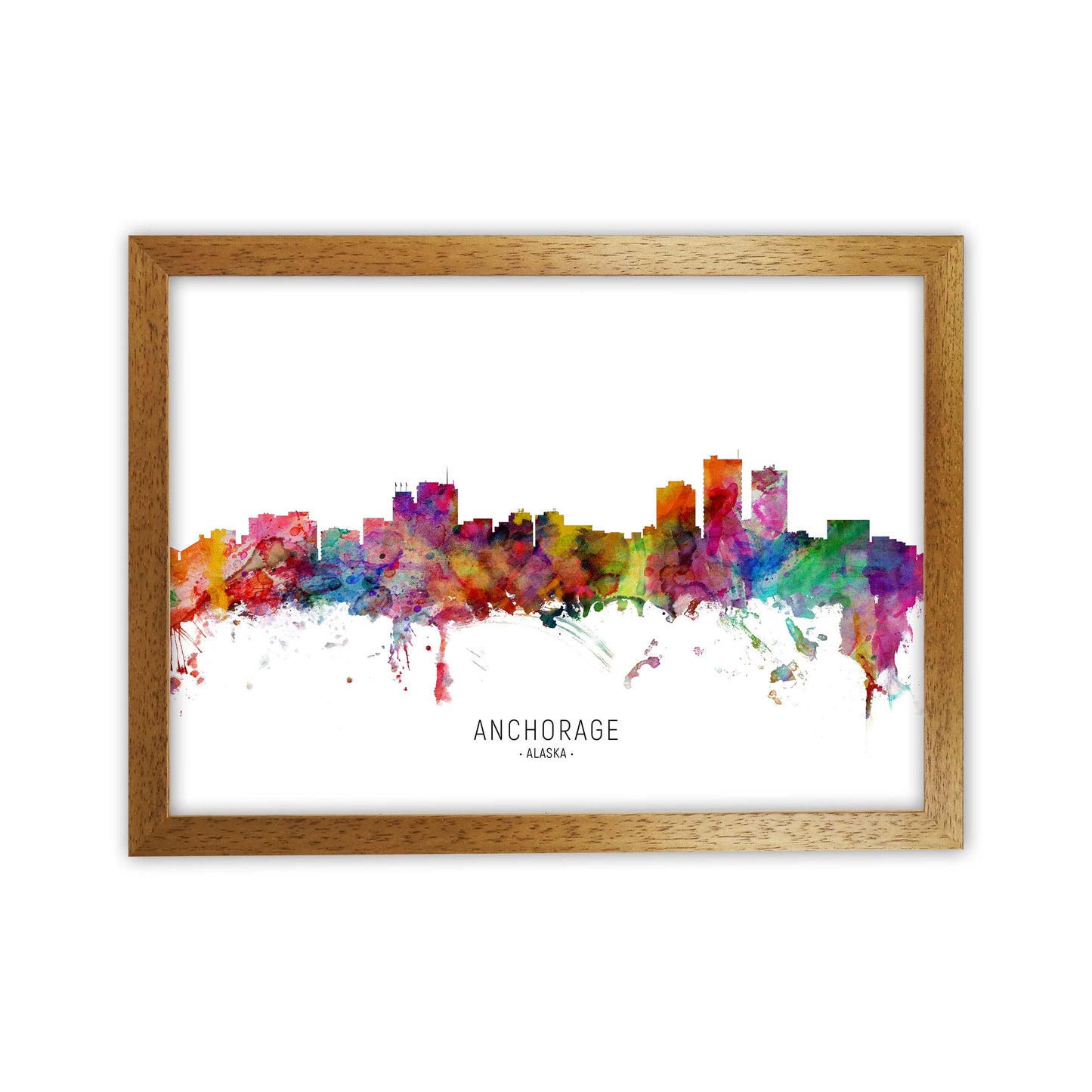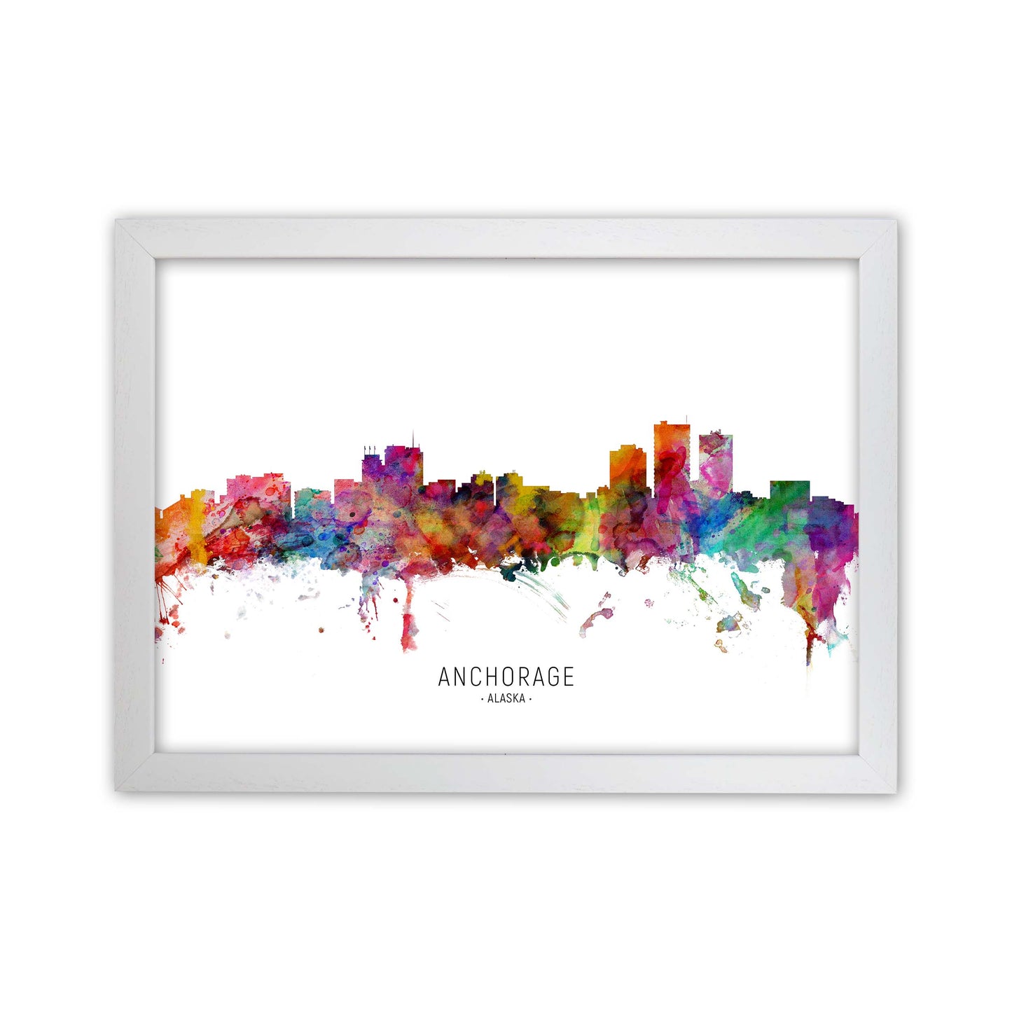 Anchorage Alaska Skyline original Giclée fine art print. Available both as a framed print, print only or vibrant canvas art. Art print from an original by Michael Tompsett ©