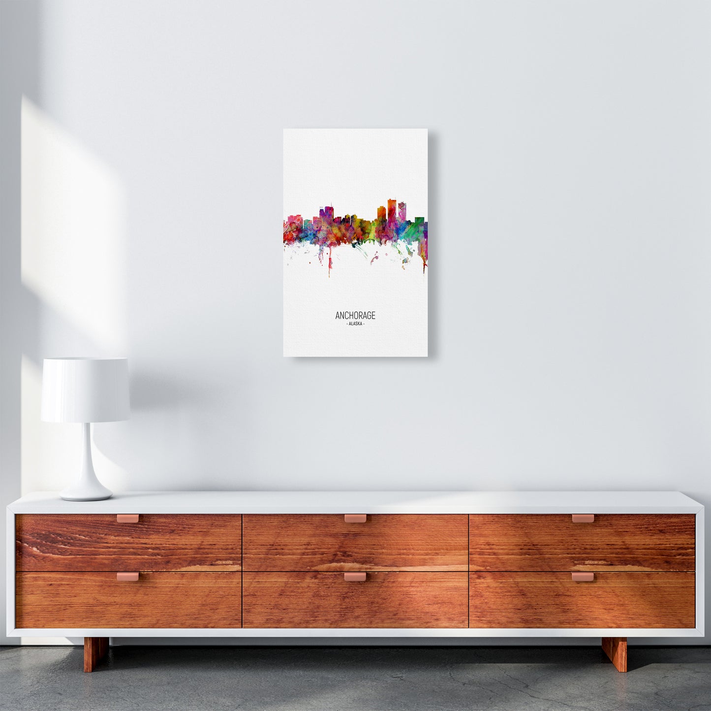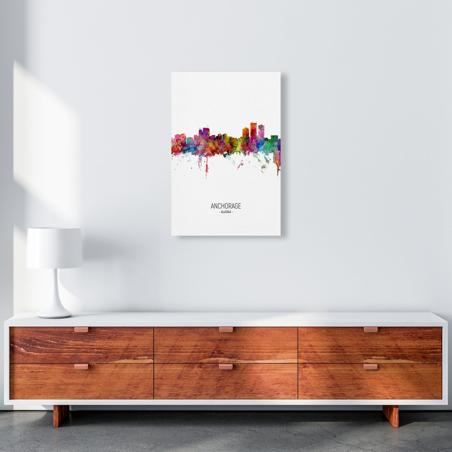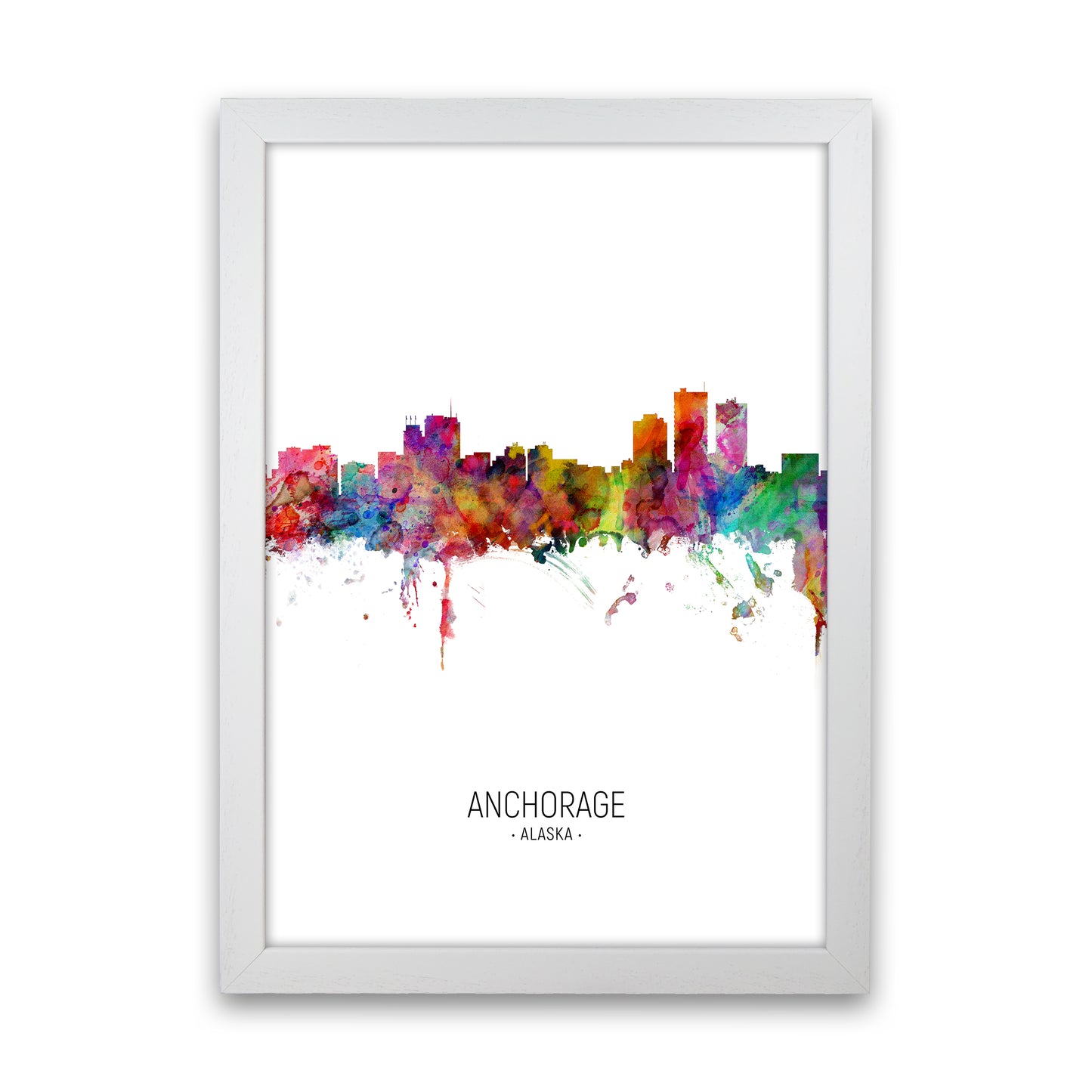 Anchorage Alaska Skyline Portrait original Giclée fine art print. Available both as a framed print, print only or vibrant canvas art. Art print from an original by Michael Tompsett ©