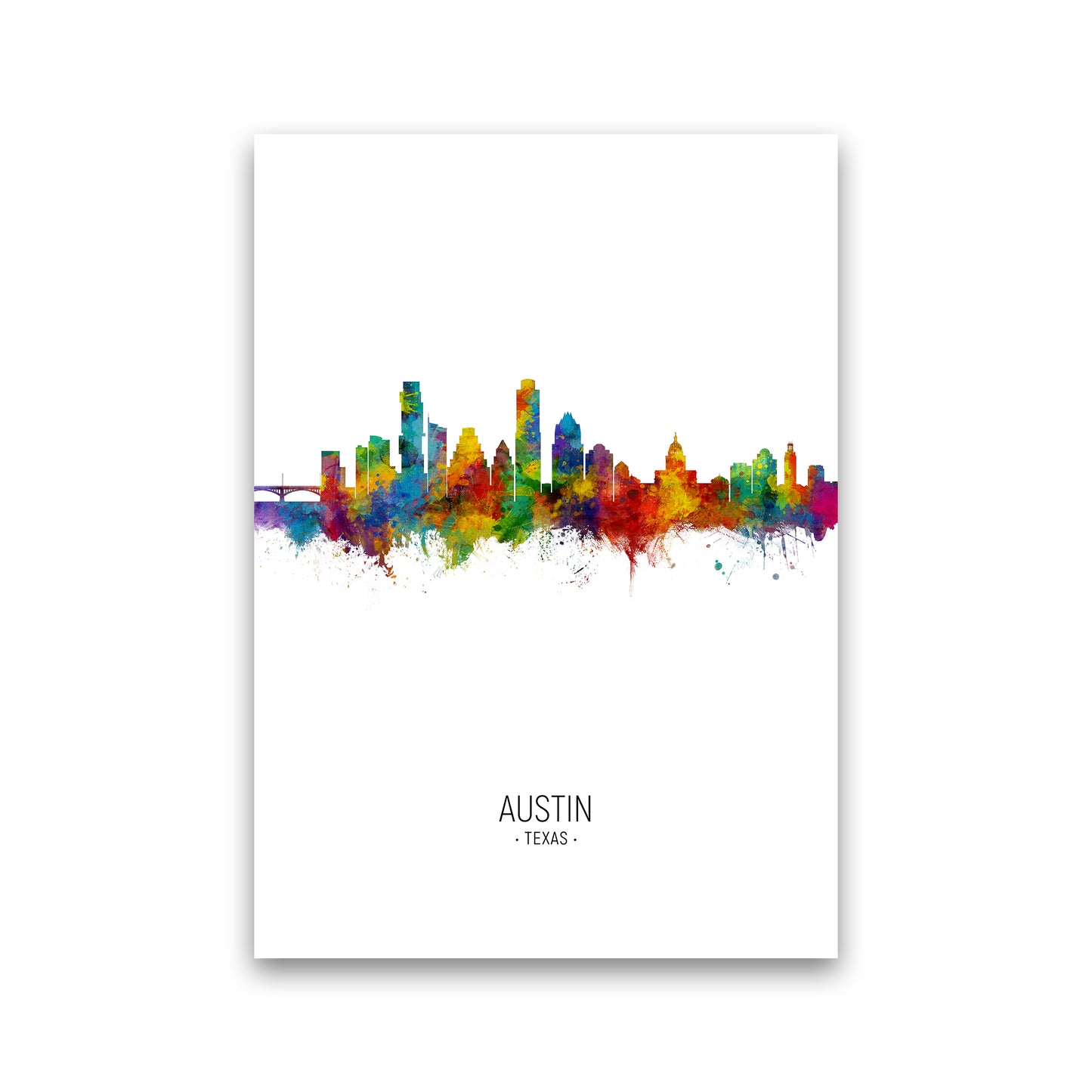 Austin Texas Skyline Portrait original Giclée fine art print. Available both as a framed print, print only or vibrant canvas art. Art print from an original by Michael Tompsett ©