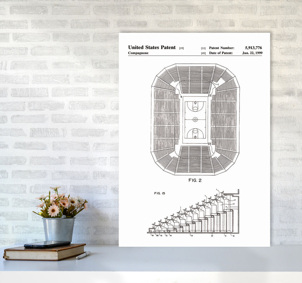 Basketball Court Patent original Giclée fine art print. Available both as a framed print, print only or vibrant canvas art. Art print from an original by Jason Stanley ©