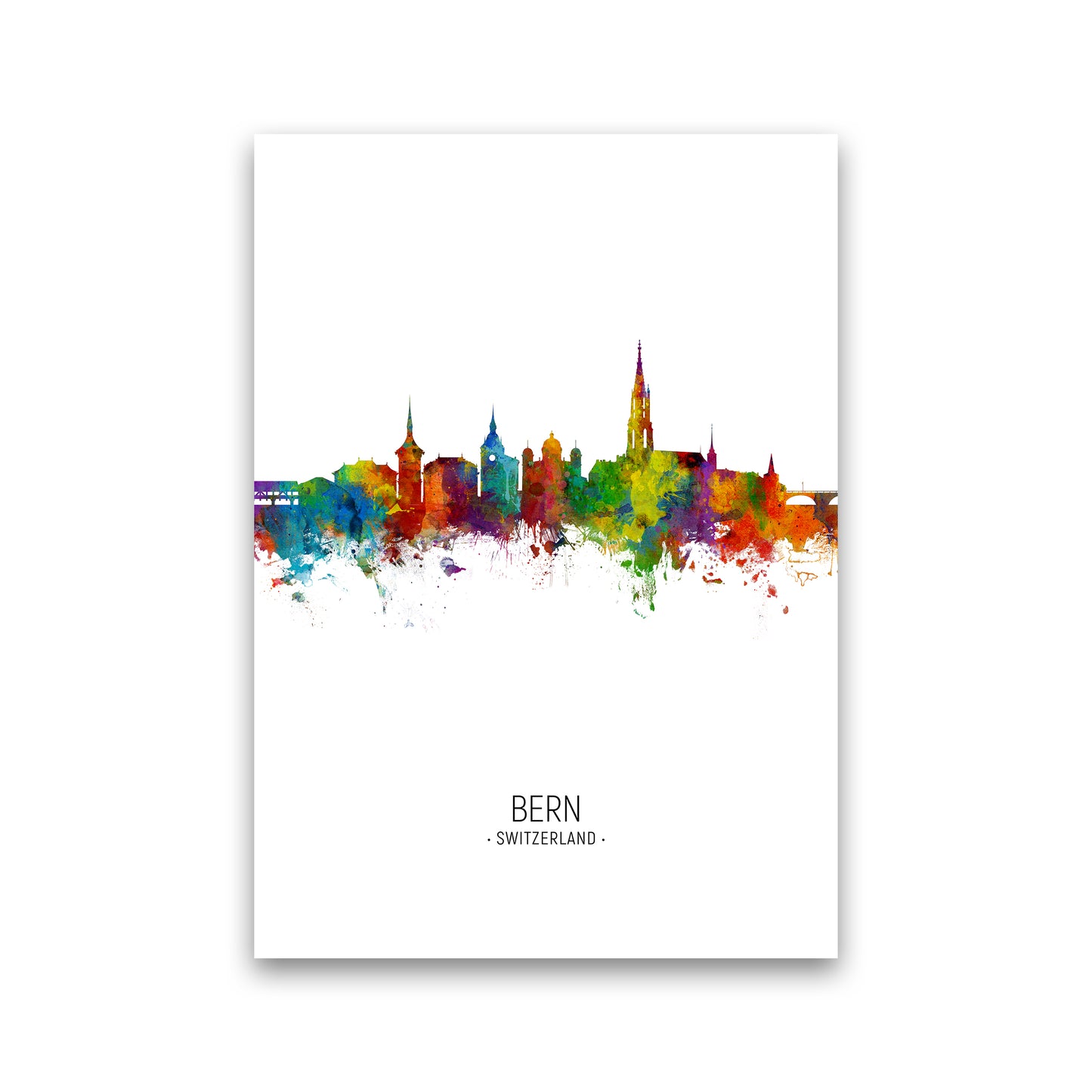 Bern Switzerland Skyline Portrait original Giclée fine art print. Available both as a framed print, print only or vibrant canvas art. Art print from an original by Michael Tompsett ©