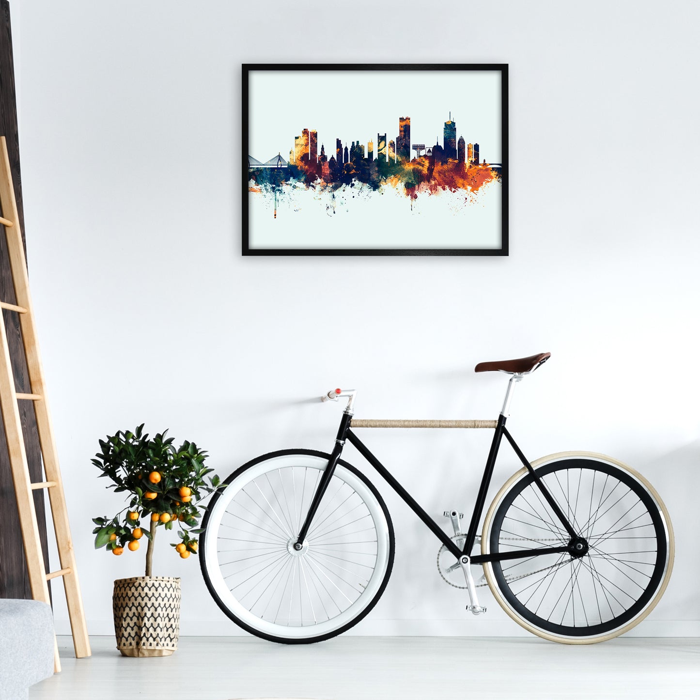 Boston Massachusetts Skyline Blue Orange original Giclée fine art print. Available both as a framed print, print only or vibrant canvas art. Art print from an original by Michael Tompsett ©