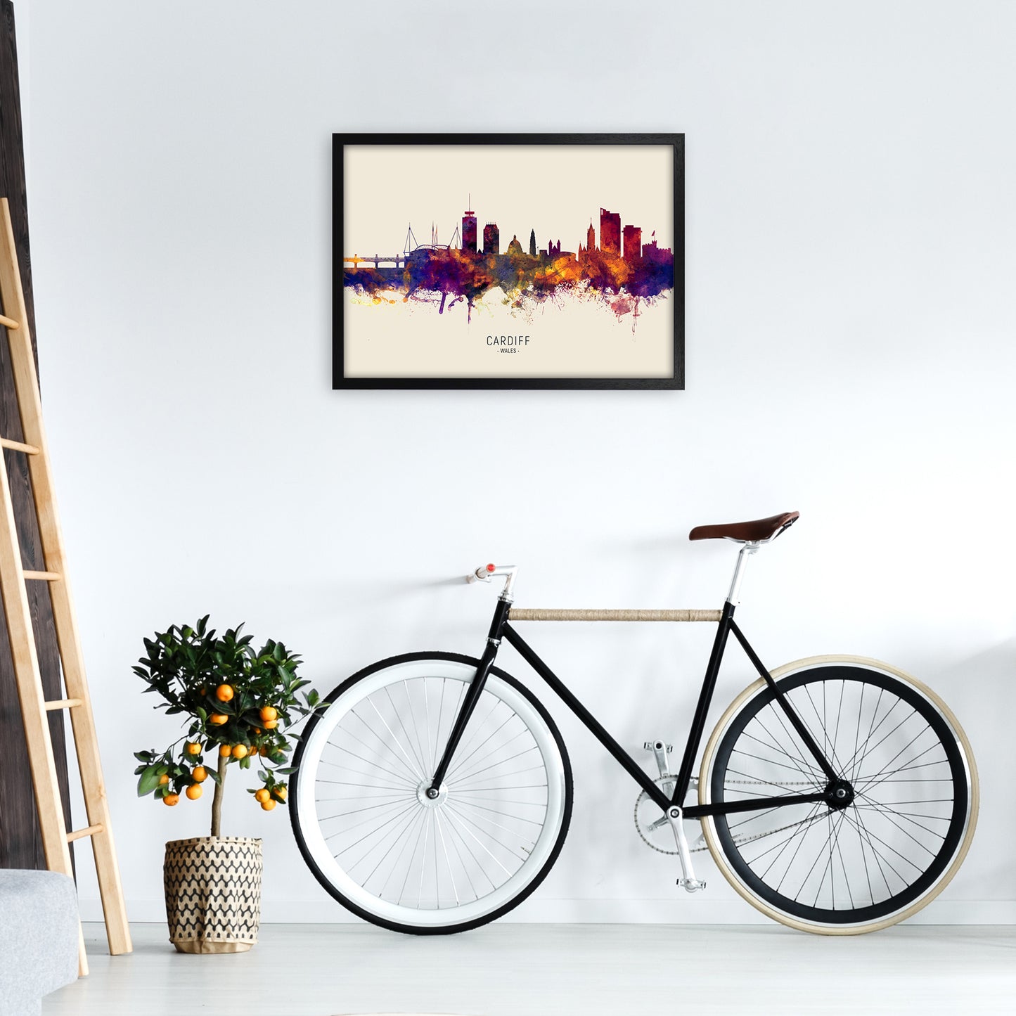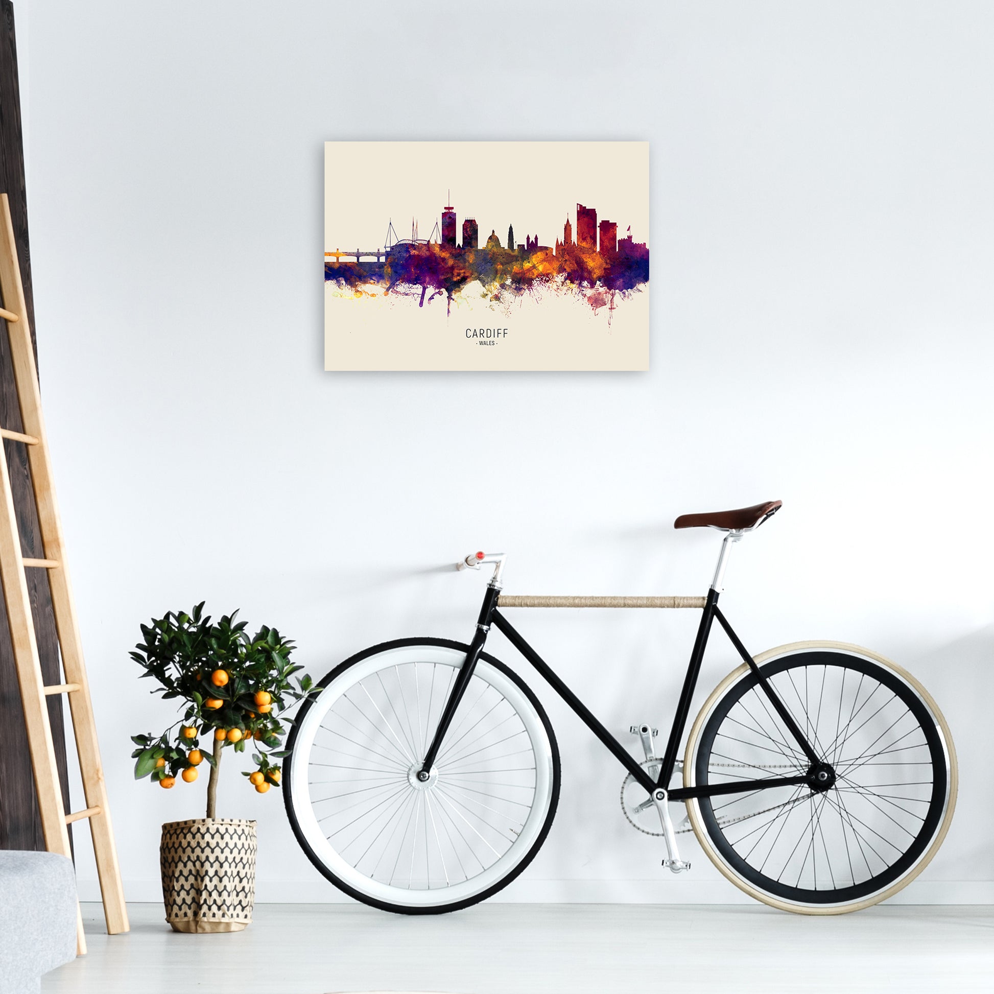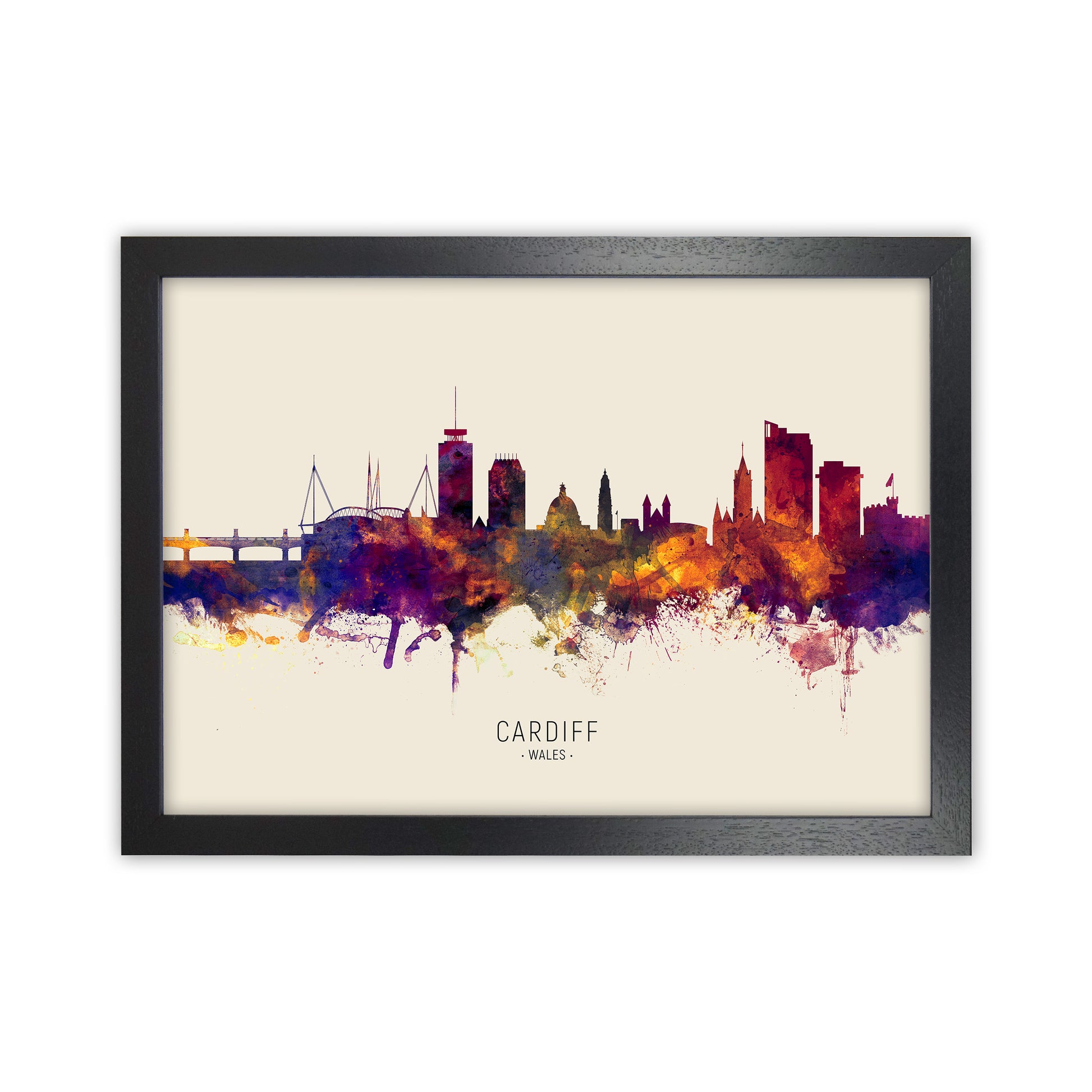 Cardiff Wales Skyline Autumn City Name original Giclée fine art print. Available both as a framed print, print only or vibrant canvas art. Art print from an original by Michael Tompsett ©