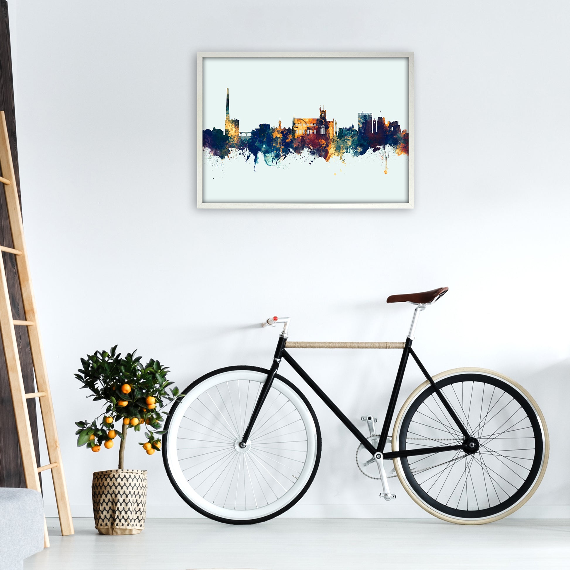 Most customers choose to have their print framed by our in-house team who manufacture all our frames by hand to order. Options of black grain, white grain or honey oak woods are available from sustainable sources. Our framed art is glazed with crystal styrene for safety during transportation and in the home and to ensure longevity. Frames arrive ready to hang on the wall.