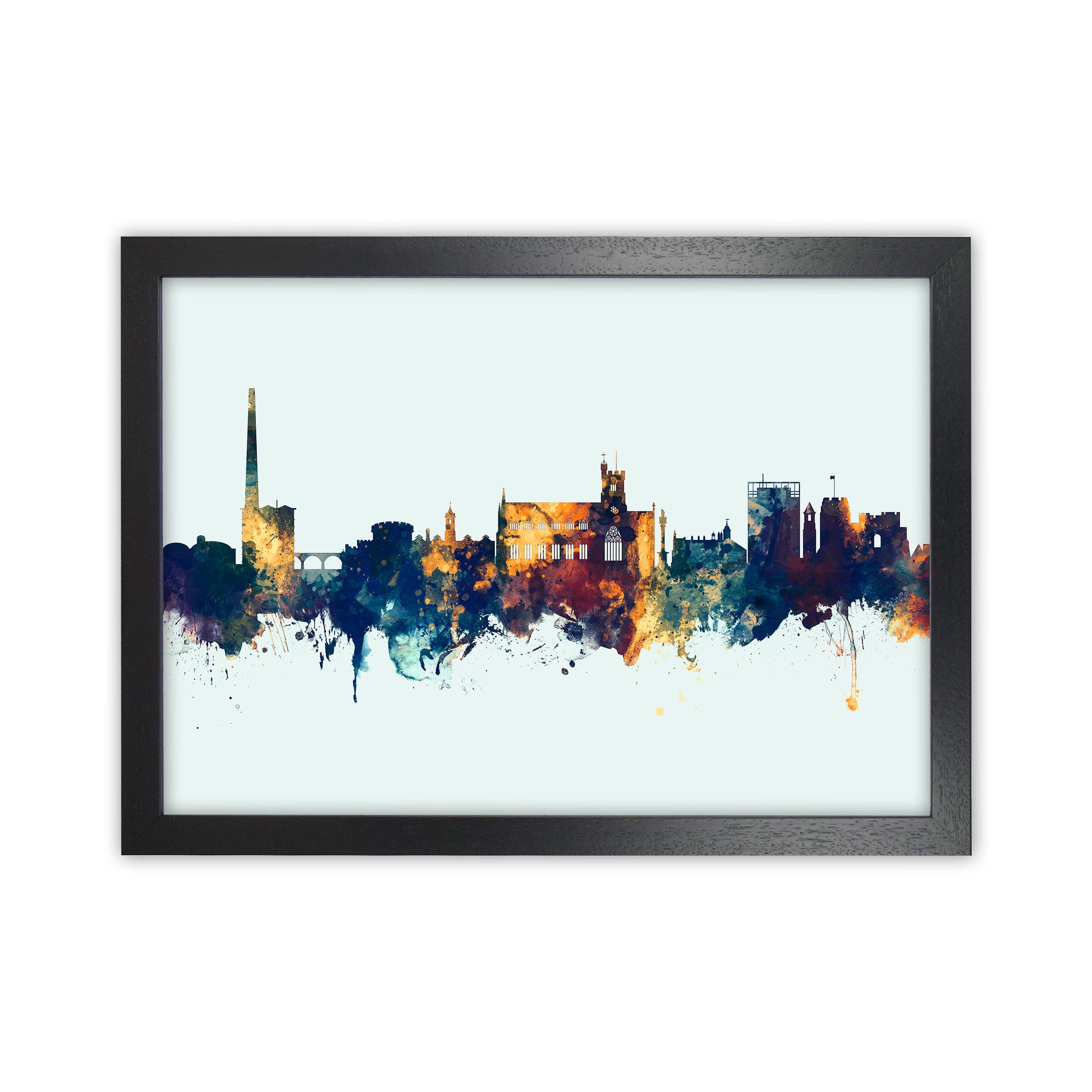 Carlisle England Skyline Blue Orange original Giclée fine art print. Available both as a framed print, print only or vibrant canvas art. Art print from an original by Michael Tompsett ©