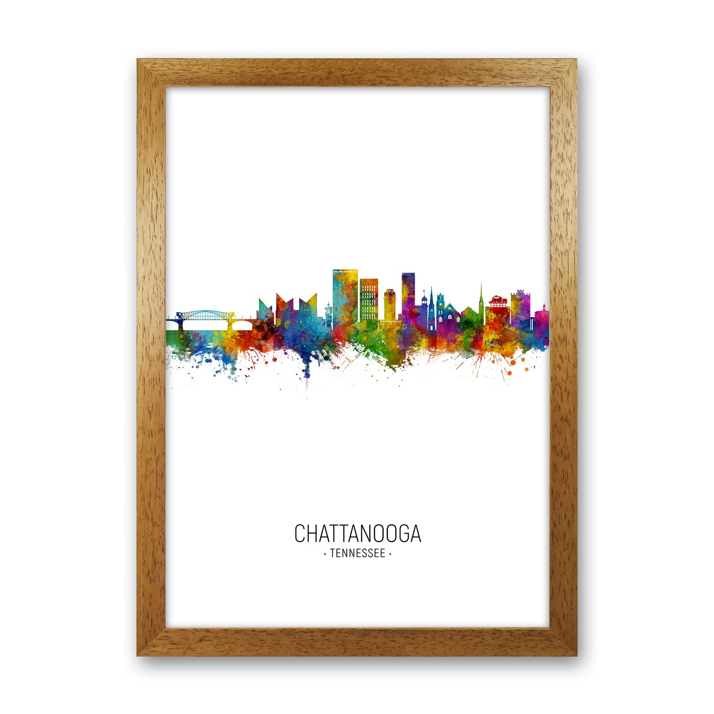 Chattanooga Tennessee Skyline Portrait original Giclée fine art print. Available both as a framed print, print only or vibrant canvas art. Art print from an original by Michael Tompsett ©