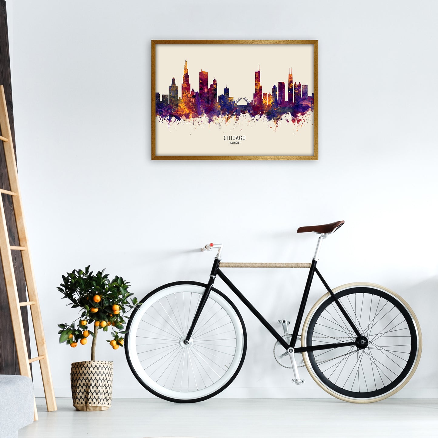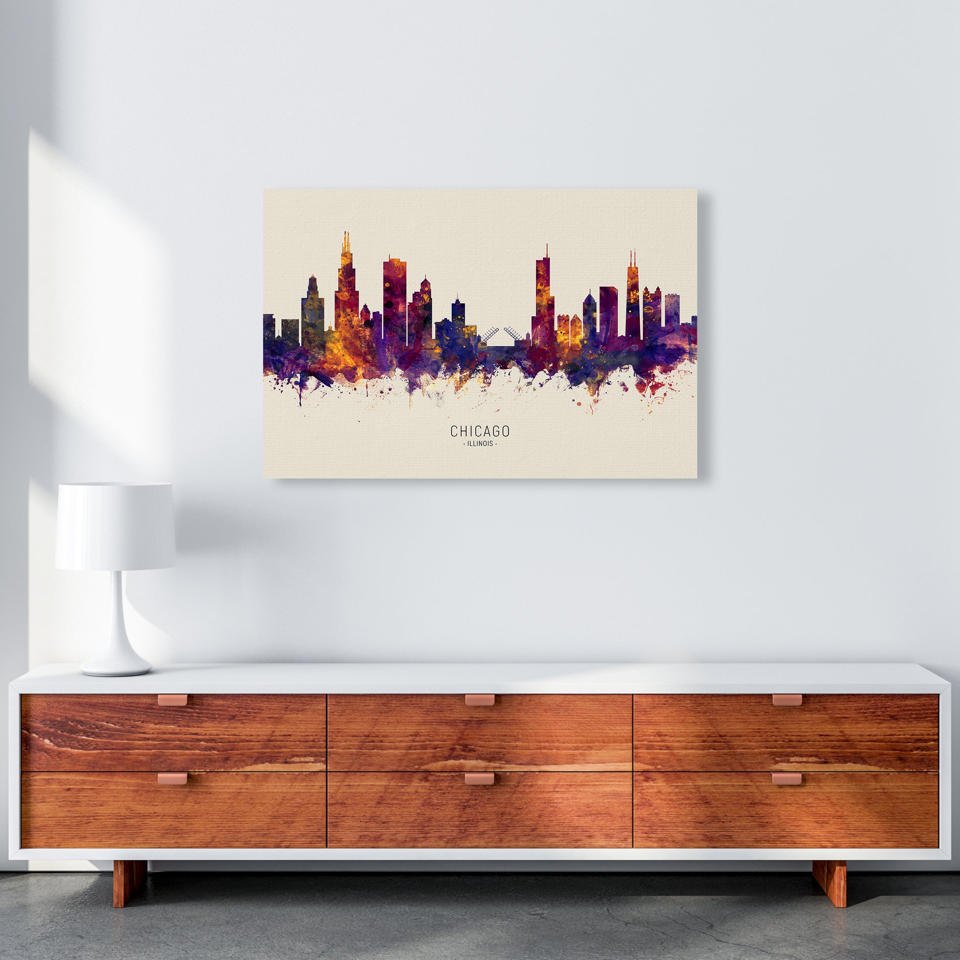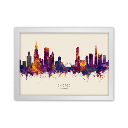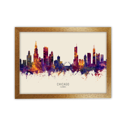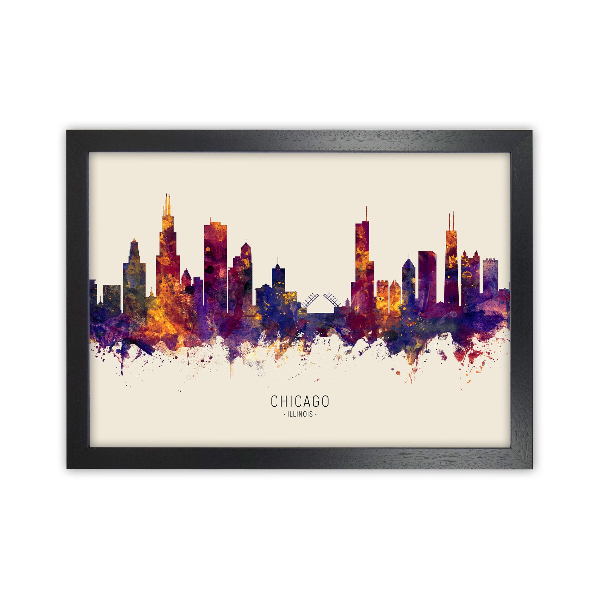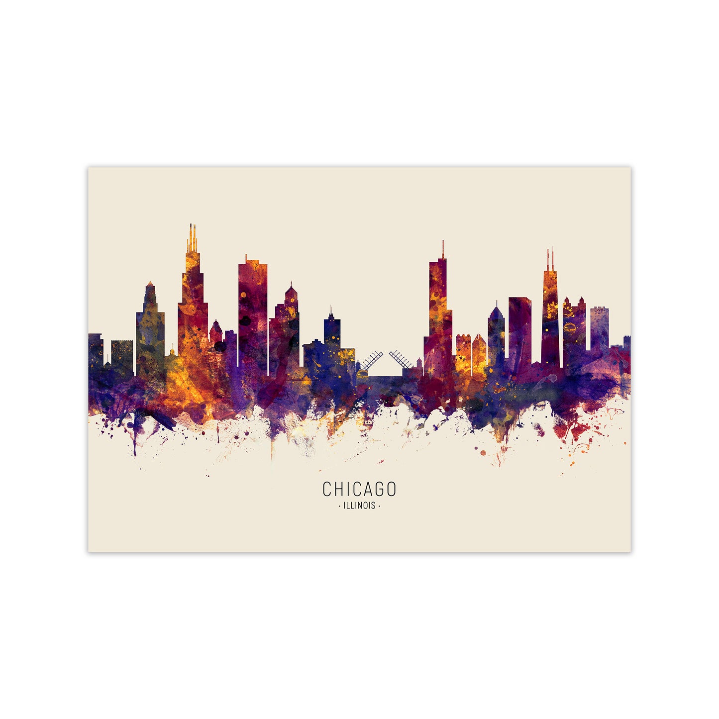 Chicago Illinois Skyline Autumn City Name original Giclée fine art print. Available both as a framed print, print only or vibrant canvas art. Art print from an original by Michael Tompsett ©