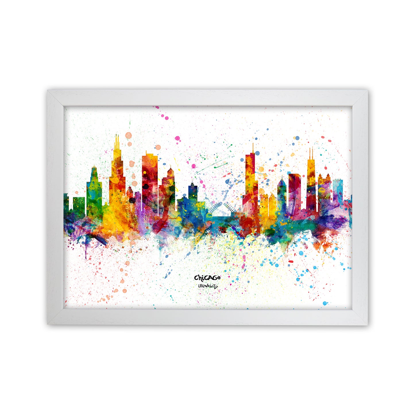 Chicago Illinois Skyline Splash Art Print by Michael Tompsett