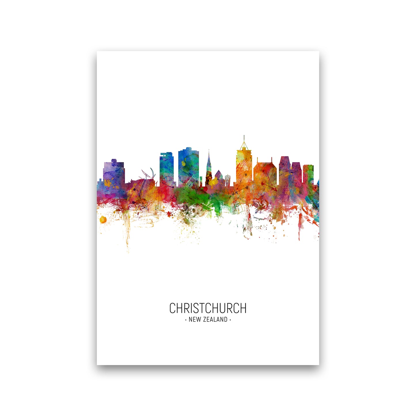 Christchurch New Zealand Skyline Portrait Art Print by Michael Tompsett