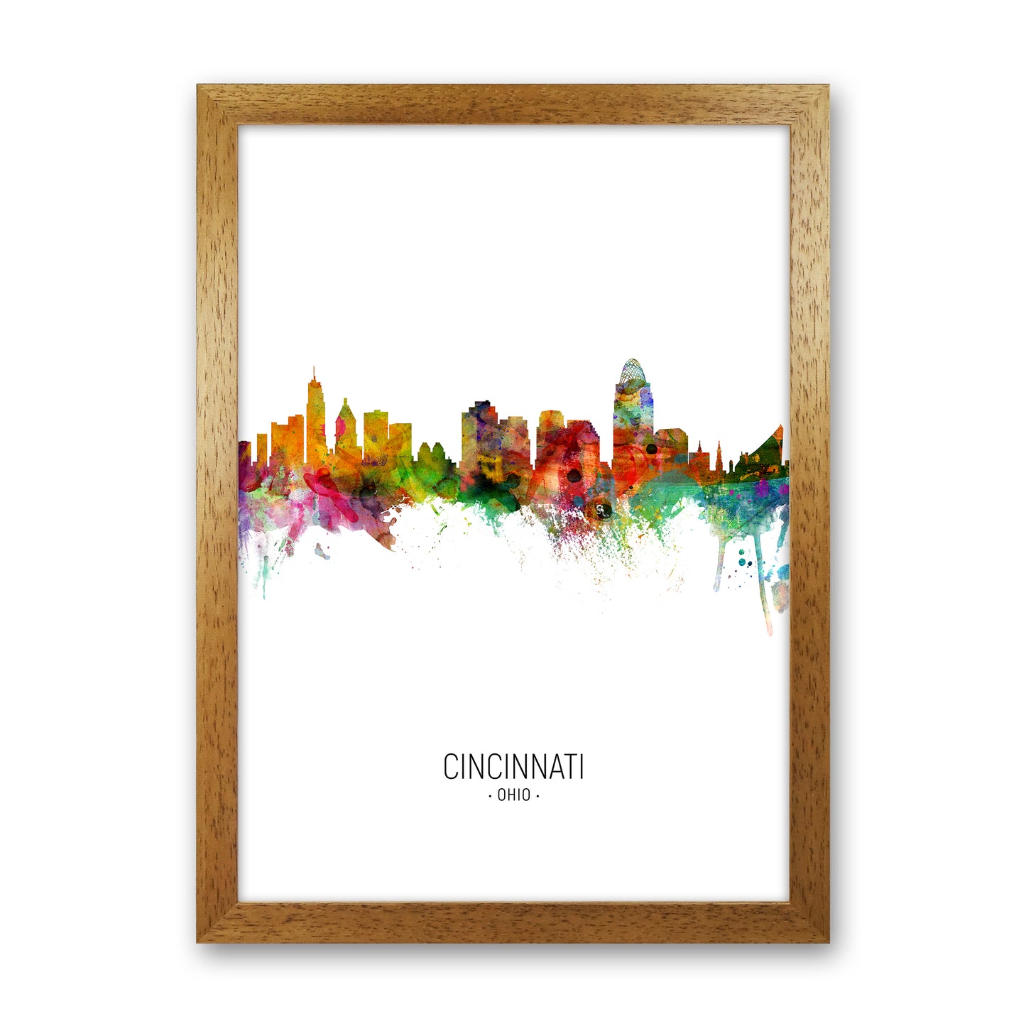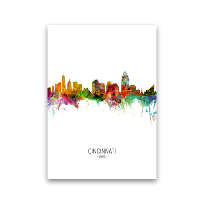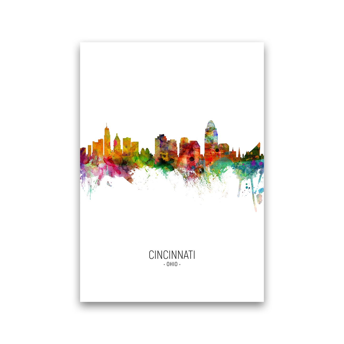 Cincinnati Ohio Skyline Portrait original Giclée fine art print. Available both as a framed print, print only or vibrant canvas art. Art print from an original by Michael Tompsett ©