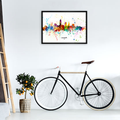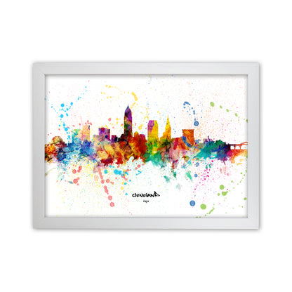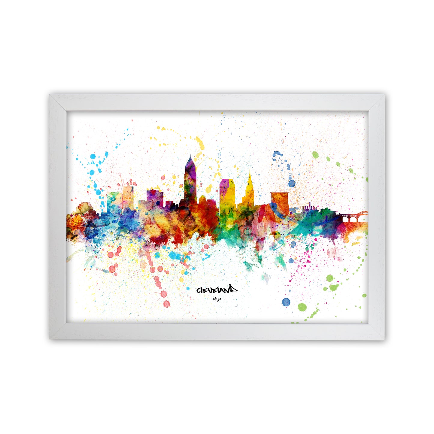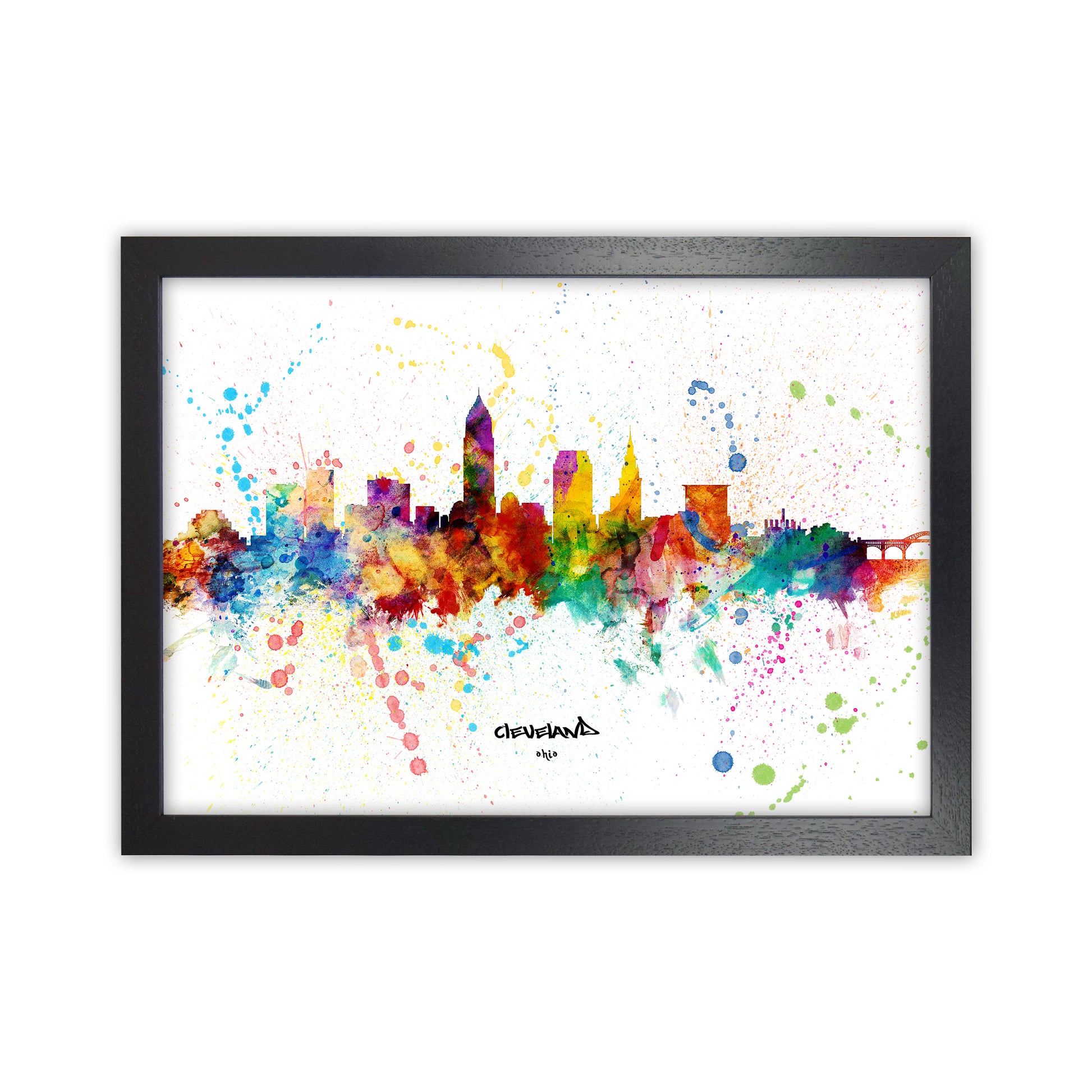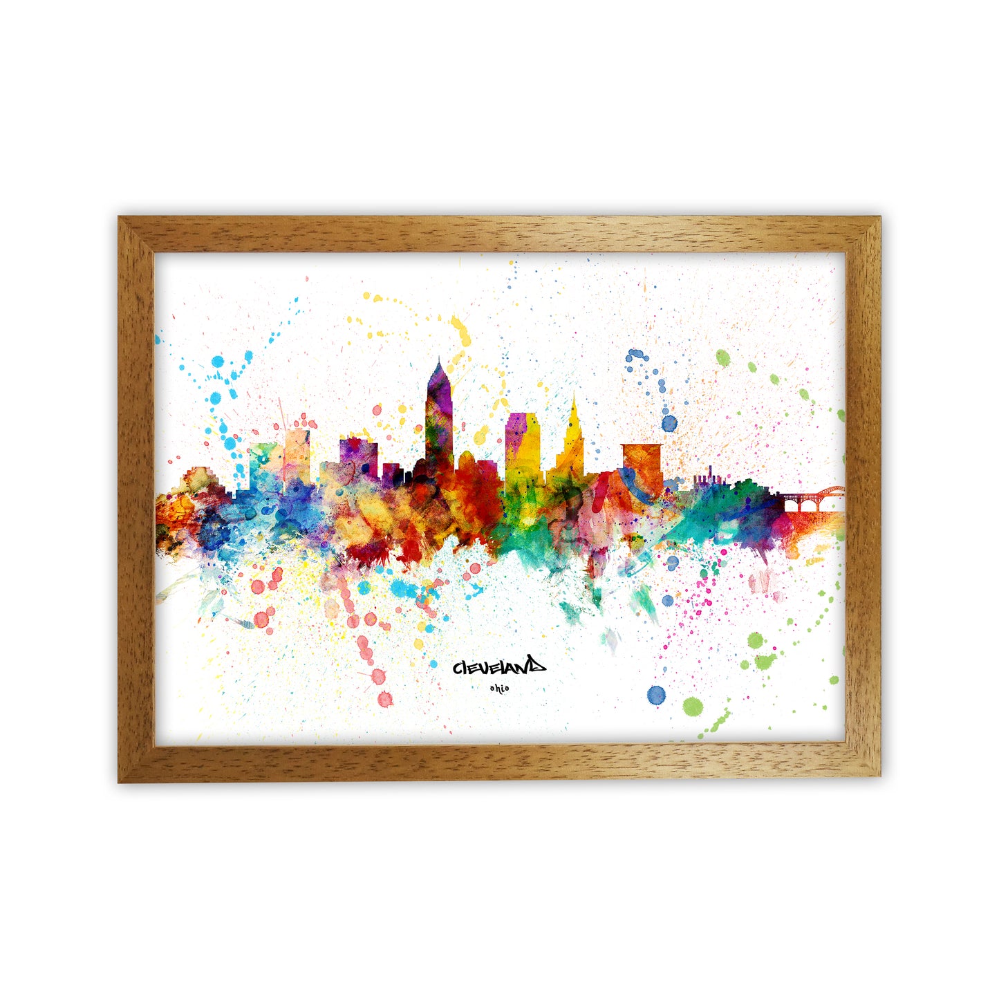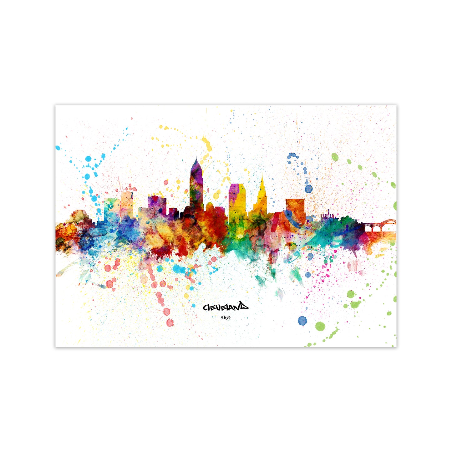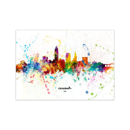 Cleveland Ohio Skyline Splash Art Print by Michael Tompsett