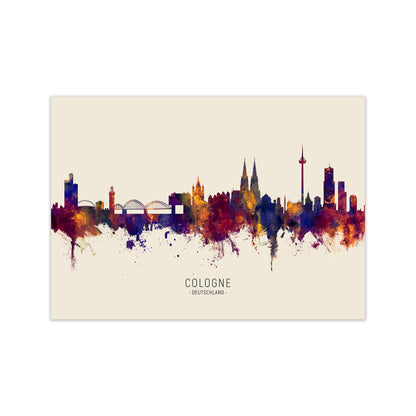Cologne Deutschland Skyline Autumn City Name original Giclée fine art print. Available both as a framed print, print only or vibrant canvas art. Art print from an original by Michael Tompsett ©