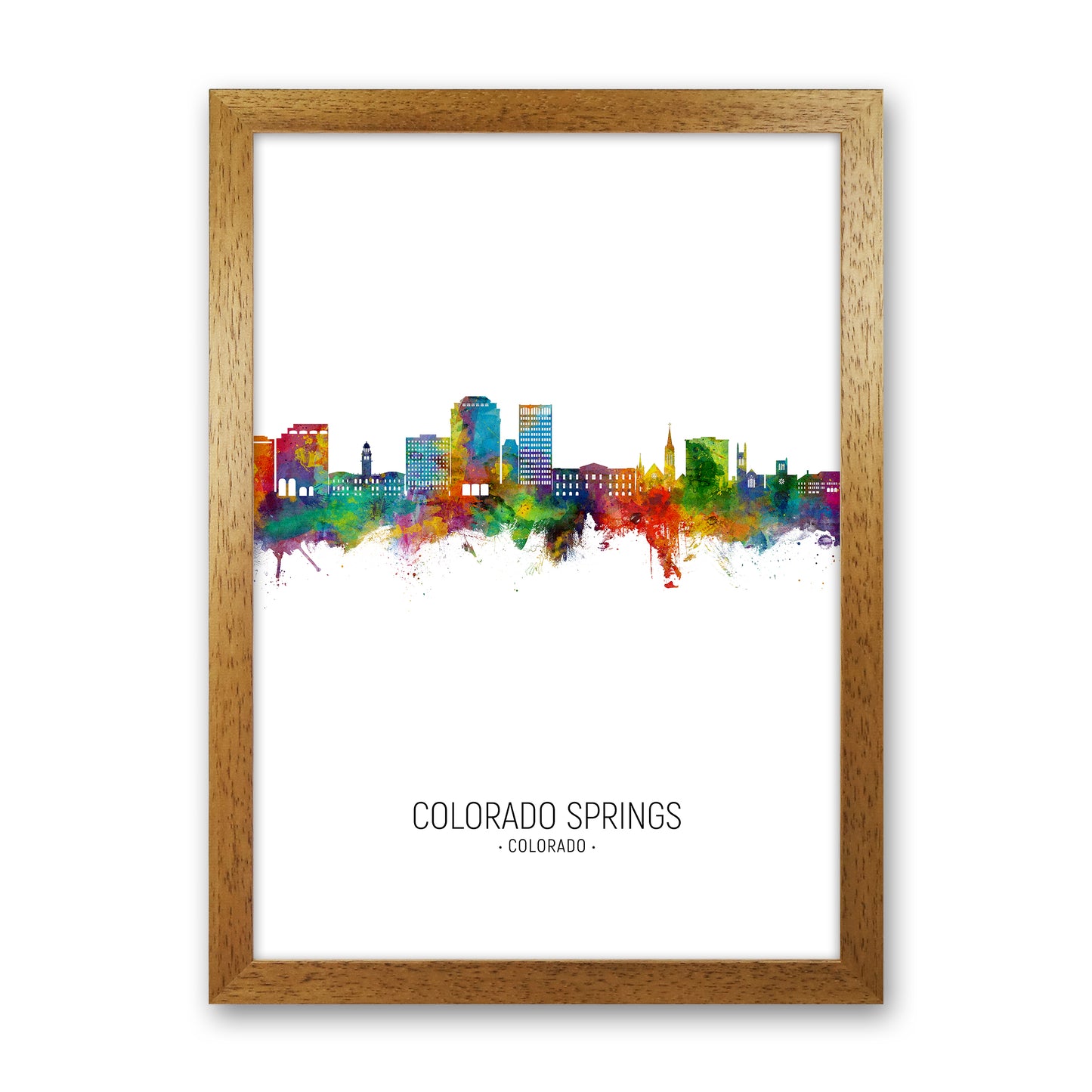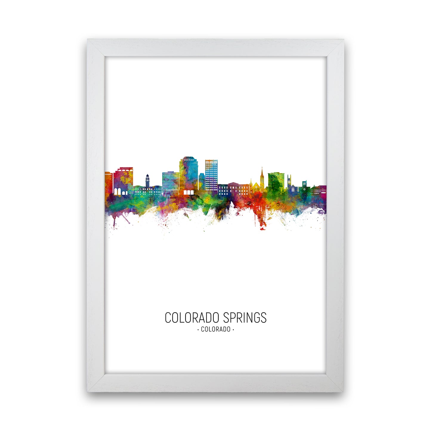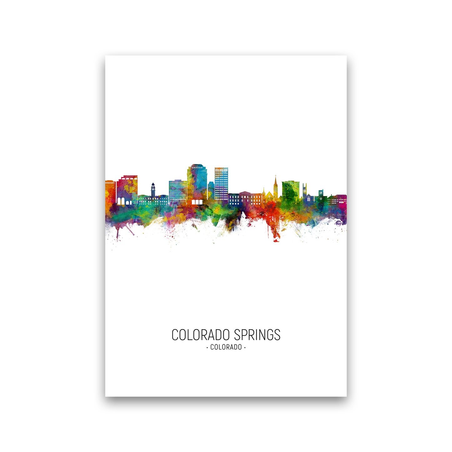Colorado Springs Colorado Skyline Portrait original Giclée fine art print. Available both as a framed print, print only or vibrant canvas art. Art print from an original by Michael Tompsett ©