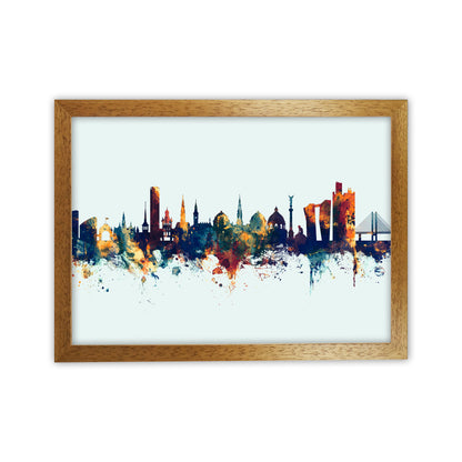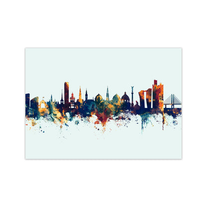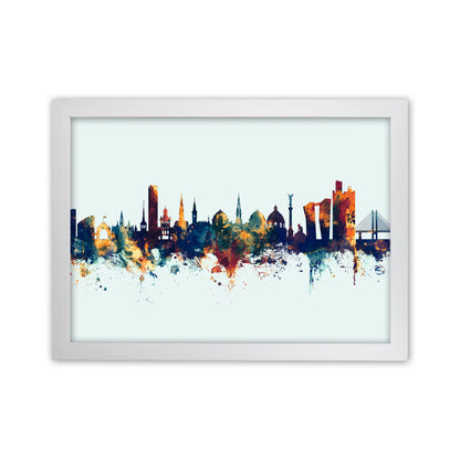 Copenhagen Denmark Skyline Blue Orange Art Print by Michael Tompsett